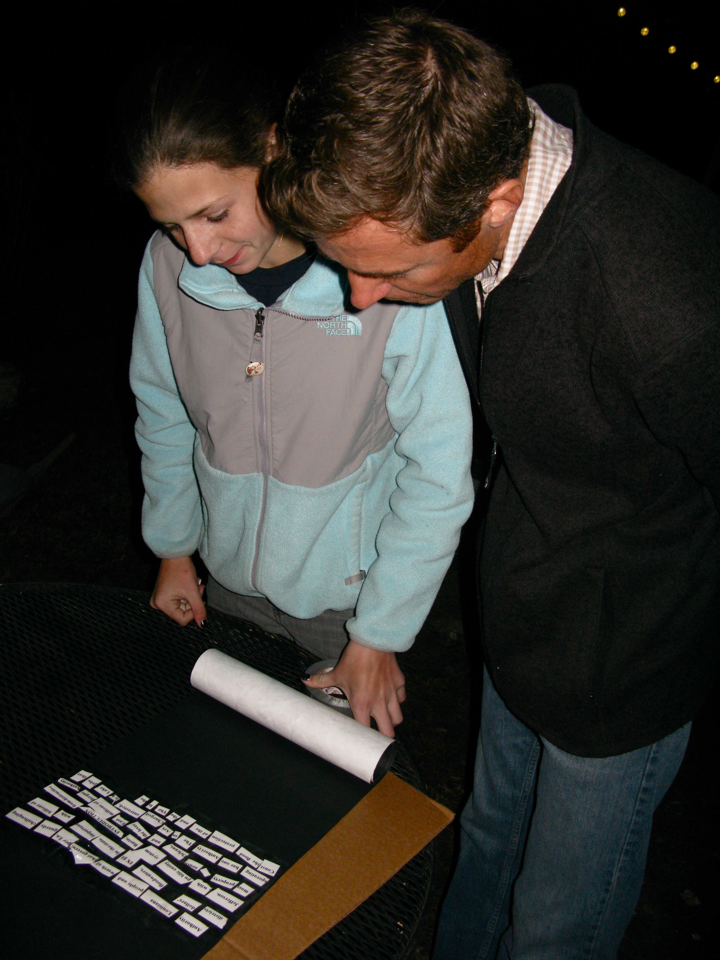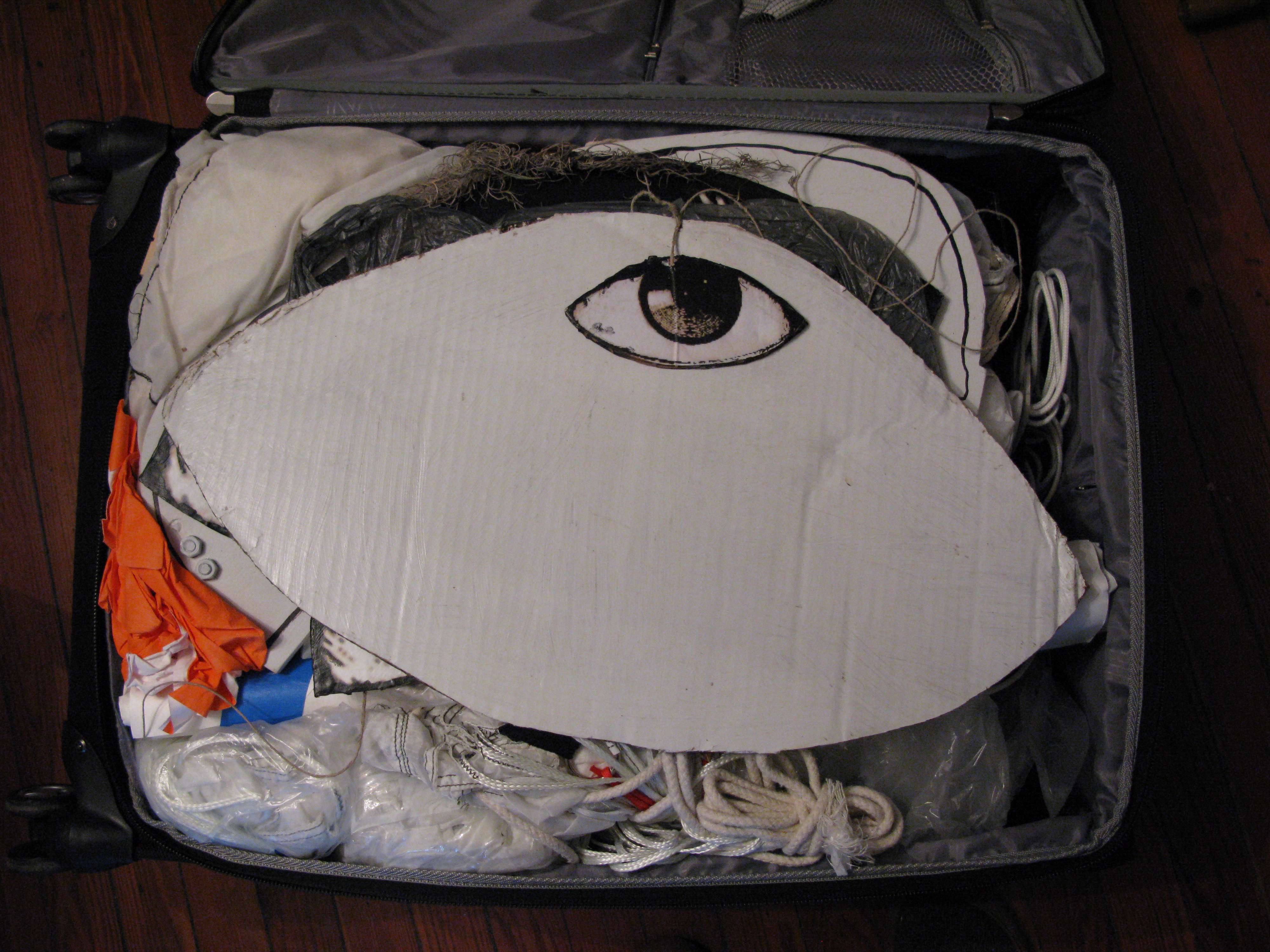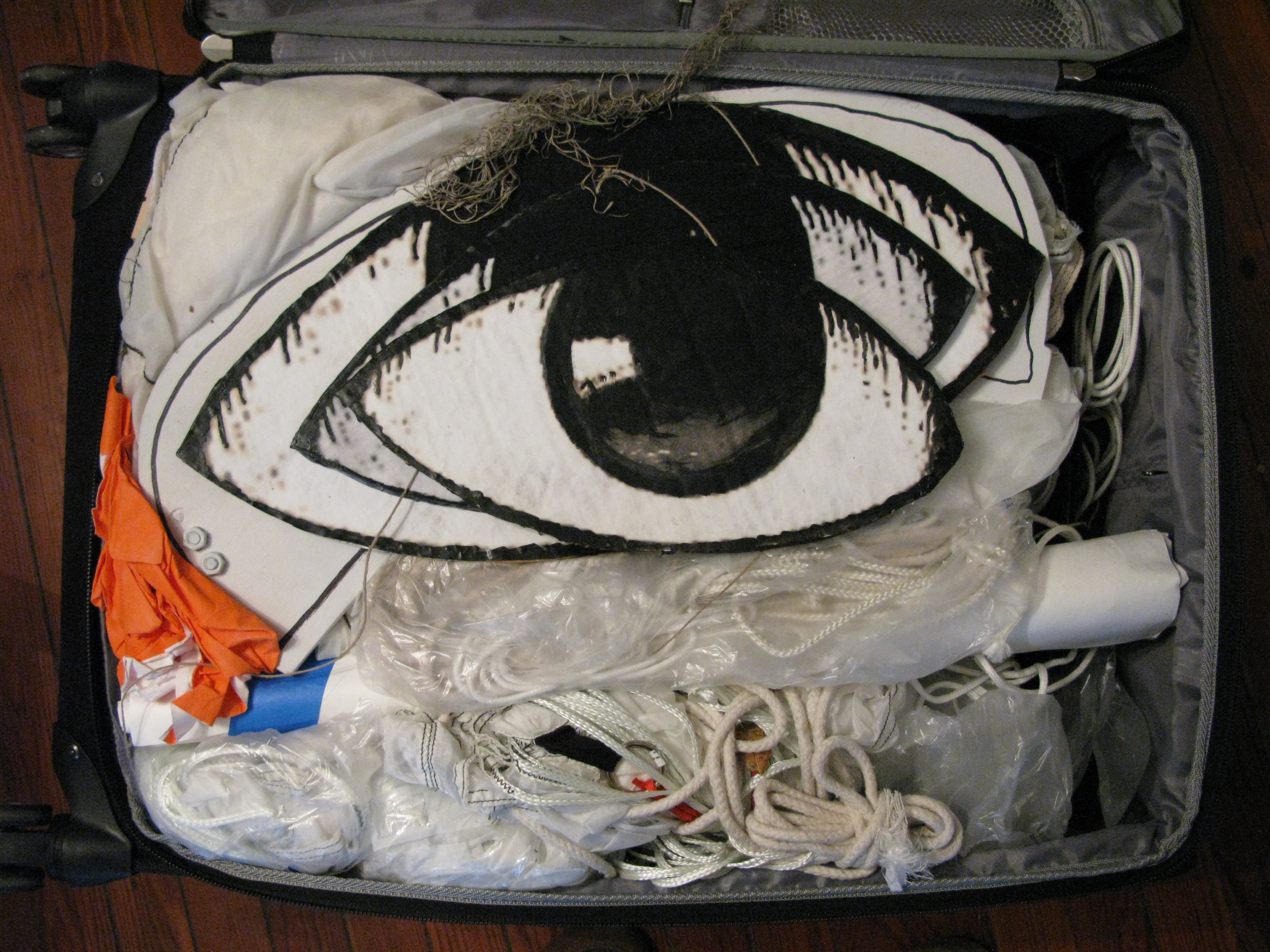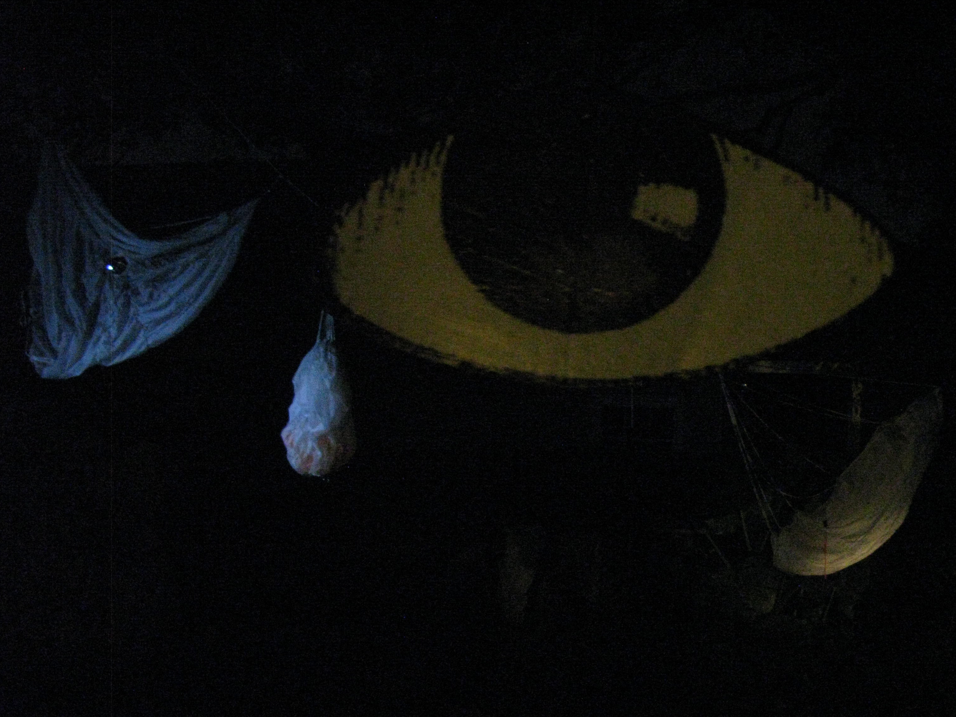 A public project in the temporary Clouet Gardens Park: an occupation of an unorganized territory in a conflict zone of disputed entitlement. Bureaucratic file cases and deflated parachutes are caught up in the old oak tree while a surveillance beacon sweeps the perimeter of the park. There is dark money, a control steering wheel, a couple of nomadic tents, megaphones, a swing and a dangling telephone. The full text of the lawsuit against Oil and Gas Companies is hung out on a laundry line. A chance to witness and participate. The Fringe Festival, New Orleans.