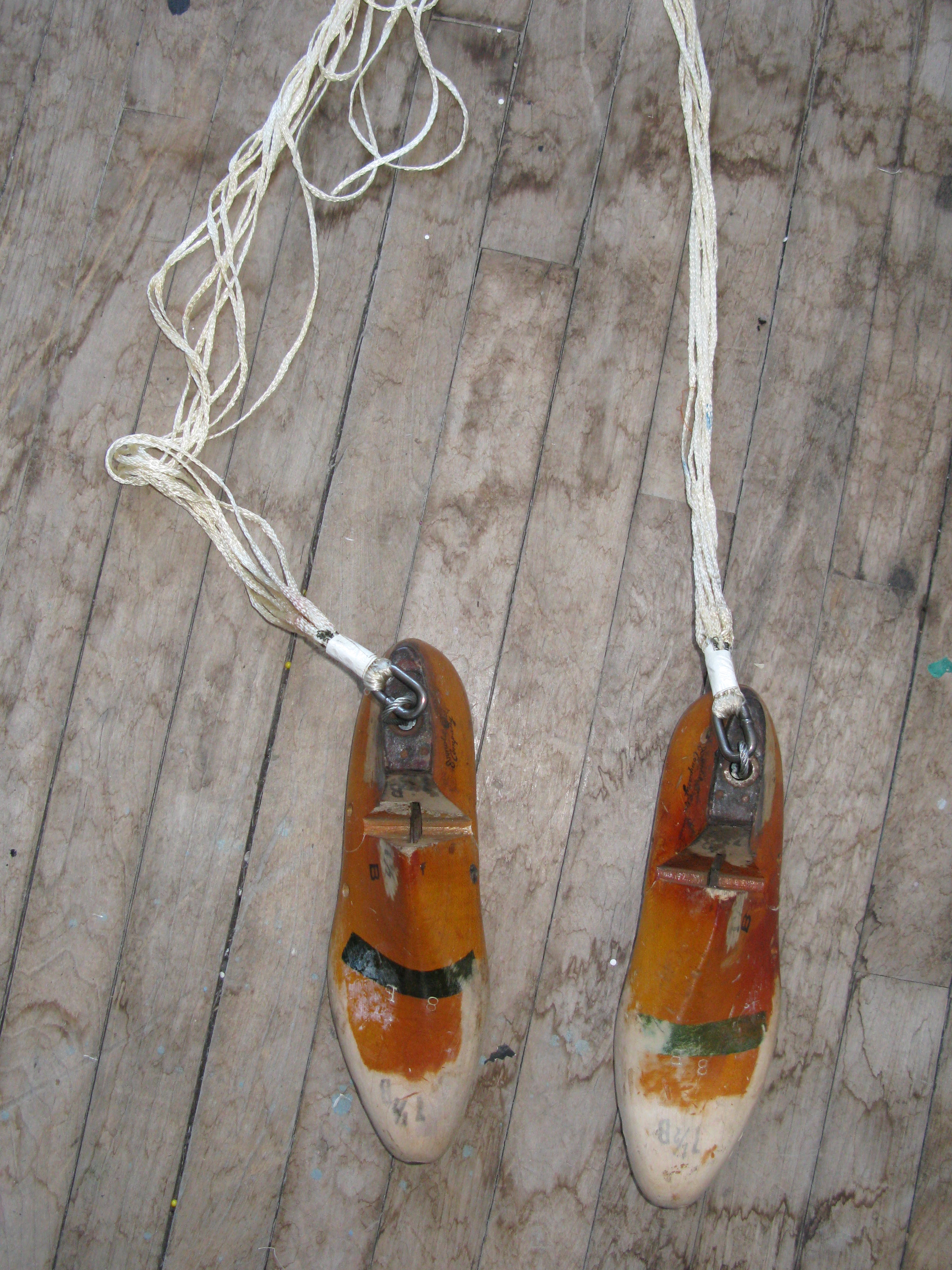 wooden shoe lasts with parachute cords